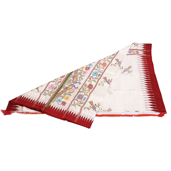 Floral Patterned White Saree