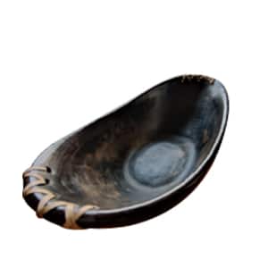 For a traditional and stylish presentation of snacks this snack/soup bowl is a must have!This beautiful bowl is made in Longpi village of Manipur. It is made from 100% mixture of black serpentinite stone and weathered rock which is mixed in a three to one ratio without wheel and machine. It is completely biodegradable, eco-friendly and does not contain harsh chemicals or toxic materials that will create adverse health effects on