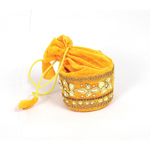 This Potli Bag is an ethnic stylish bag made by ladies from Manipur using cloths and newspapers. It goes perfectly for your party to wear traditional dresses and sarees and also goes well with any Casual Indian Dresses and for a wedding. It is lightweight and can easily be wrapped around the wrist using their drawstrings.